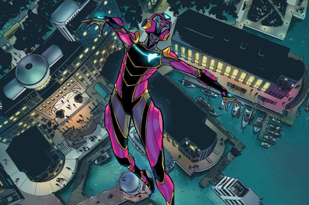 “Riri Williams builds her own suit of advanced armor and leads a life of adventure, crime-fighting, and humanitarianism as the superhero known as Ironheart.”